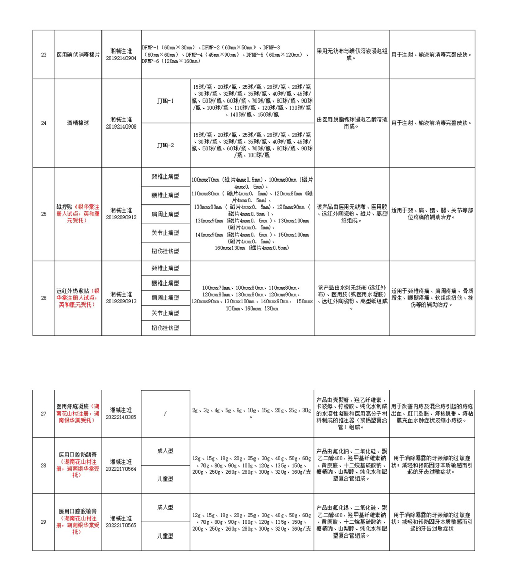 湖南银华棠批文目录