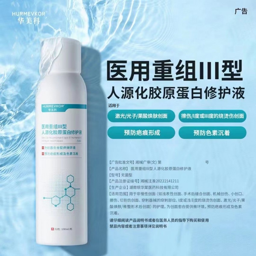 湖南银华棠于2023年重磅推出“医用重组III型人源化胶原蛋白系列”修复液-修复凝胶-修复贴,二类医疗器械,资质齐全,着力打造安心、可靠、长效的高科技美肤产品!