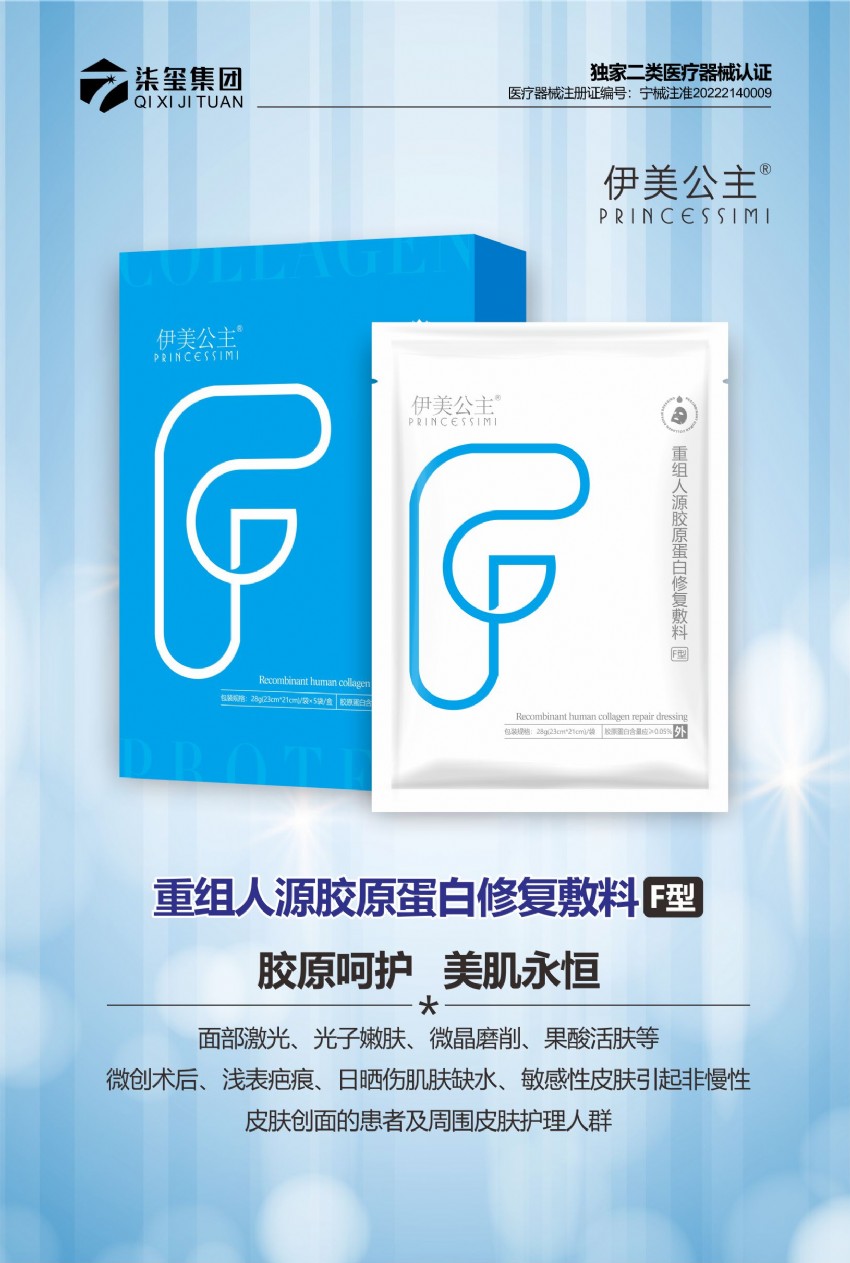 一、产品名称:伊美公主(重组人源胶原蛋白修复敷料F型)