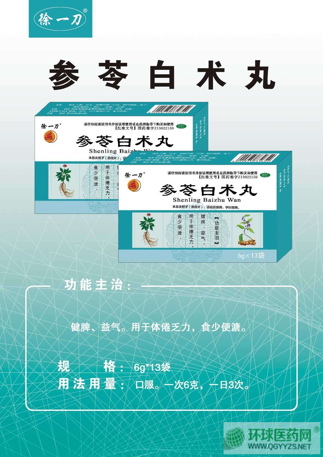 - 参苓白术丸(徐一刀) 批准文号: 国药准字z13022159规 格: 6g*13袋