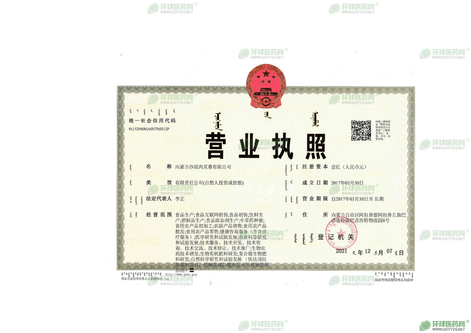 公司基地位于肉苁蓉道地产区的核心区巴丹吉林沙漠,接种肉苁蓉12.9万亩,年产量800多吨,是目前国际*大的荒漠肉苁蓉仿野生种植基地。2015年公司成立实验室。实验室得到北大药学院、中国中医科学院、中国农科院等肉苁蓉研究领域**专家团队的指导和大力支持,发表多篇论文,参与国家科研项目,参与制定行业标准,自主研发了**市场的肉苁蓉产品。公司在梭梭树种植养护、肉苁蓉接种、种子培育、病虫害、鼠害生物防治以及肉苁蓉高纯度萃取干燥技术等方面,取得了多项专利成果,形成了企业强大的核心竞争力。