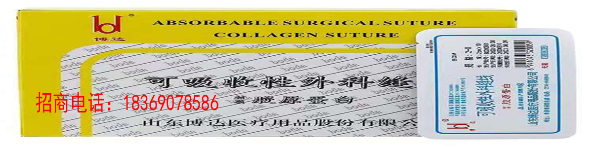 博达医疗:医用缝合线招商,可吸收性缝线,全进口缝合针,源头厂家,市场保护 尊敬的代理商,我们很自豪地向您介绍我们的产品--医用缝合线。这是由胶原蛋白加工制成的新一代医用缝合材料,采用进口日本马尼缝针装配,医生操作轻松,其胶原蛋白缝线是从羊肠衣内提取的蛋白,加酶处理,按照国家医用标准,精致加工而成。这款缝线属于一类医疗器械,