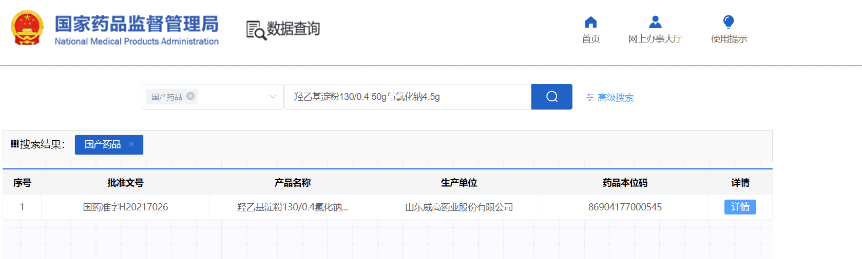 通用名称:羟乙基淀粉130/0.4氯化钠注射液