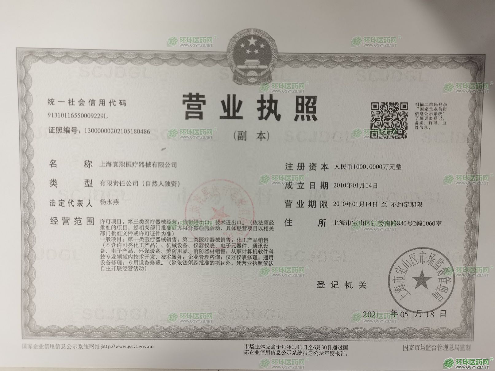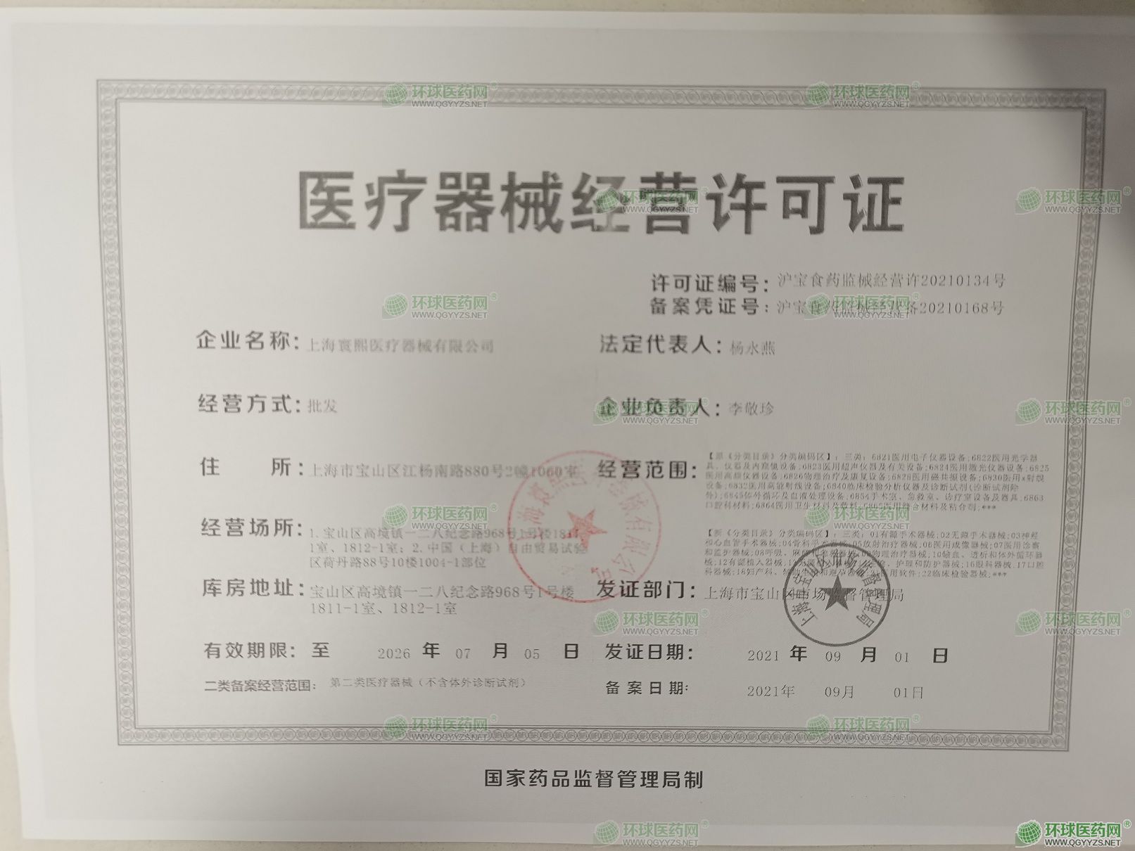上海寰熙医疗器械有限公司成立于2010年01月14日,注册地位于上海市宝山区江杨南路880号2幢1060室,法定代表人为杨永燕。经营范围包括许可项目:第三类医疗器械经营;货物进出口;技术进出口。(依法须经批准的项目,经相关部门批准后方可开展经营活动,具体经营项目以相关部门批准文件或许可证件为准)一般项目:**类医疗器械销售;第二类医疗器械销售;化工产品销售(不含许可类化工产品);机械设备、仪器仪表、电子元器件、通讯设备、电子产品、环保设备、劳防用品、消防器材销售;从事计算机软件科技专业领域内技术开发、技术服务;企业管理咨询;仪器仪表修理;通用设备修理;专用设备修理。(除依法须经批准的项目外,凭营业执照依法自主开展经营活动)上海寰熙医疗器械有限公司对外投资3家公司,具有1处分支机构。