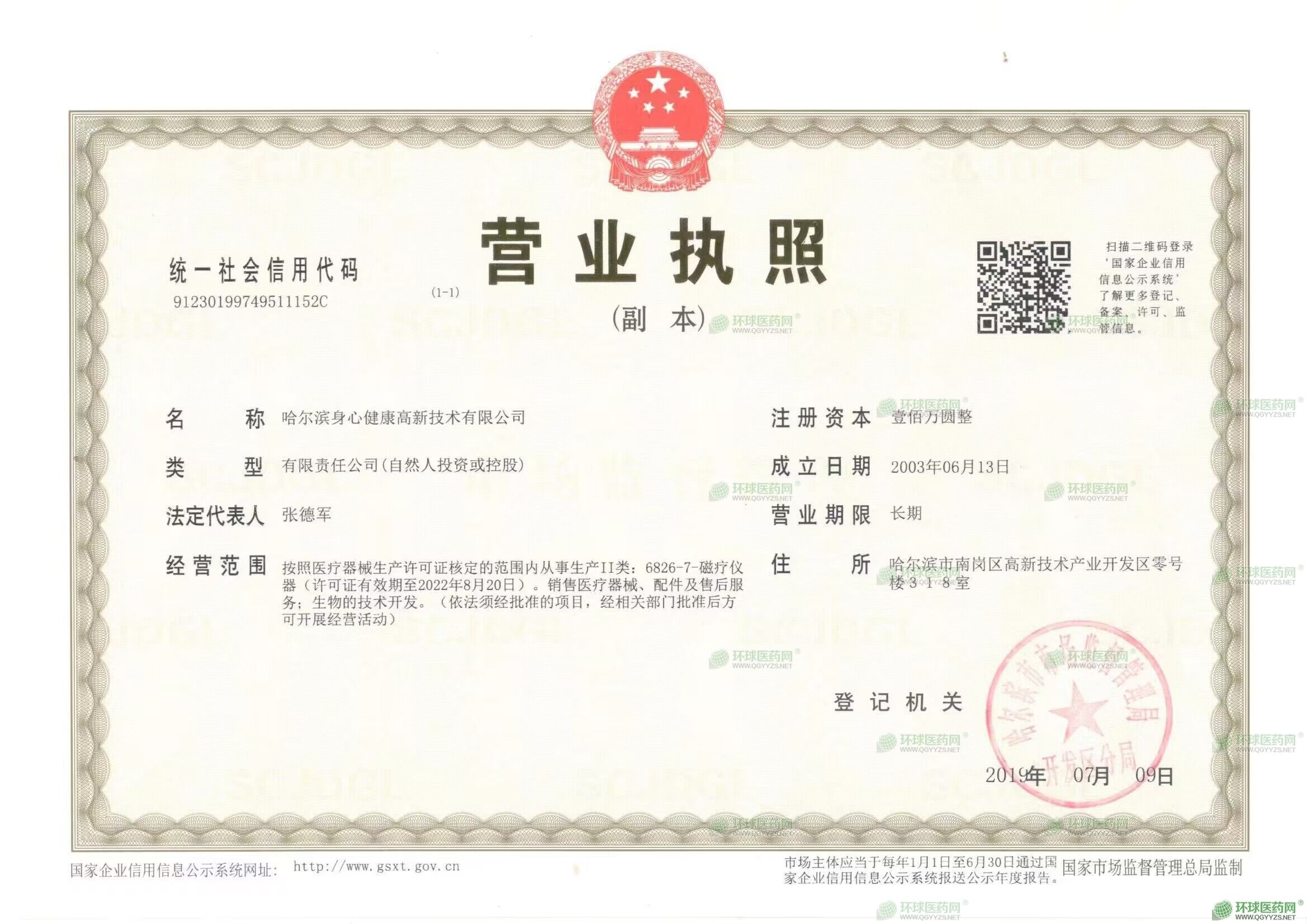 哈尔滨身心生物科技有限公司成立于1996年06月13日,注册地位于哈尔滨高新技术产业开发区南岗集中区嵩山路5号(零号楼)615室,法定代表人为张译丹。经营范围包括一般项目:技术服务、技术开发、技术咨询、技术交流、技术转让、技术推广;食品销售(仅销售预包装食品);保健食品(预包装)销售;日用百货销售;服装服饰零售;电子产品销售;家用电器销售;食品互联网销售(仅销售预包装食品);食品进出口;婴幼儿配方乳粉及其他婴幼儿配方食品销售;宠物食品及用品批发;**类医疗器械生产;第二类医疗器械销售;**类医疗器械销售;国内贸易代理;软件开发;工程和技术研究和试验发展;广告设计、代理;广告发布;广告制作;品牌管理;数字内容制作服务(不含出版发行);平面设计;互联网销售(除销售需要许可的商品);人工智能双创服务平台;远程健康管理服务;网络设备制造;信息咨询服务(不含许可类信息咨询服务);网络设备销售;货物进出口;技术进出口;进出口代理;会议及展览服务;进出口商品检验鉴定。