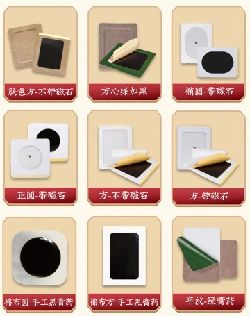 远洋苗家药业提供以下剂型︰多种贴剂(巴布贴、弹力布贴、黑膏药、老膏药、艾草贴、生姜贴、暖宫贴、助阳贴、降糖贴、助眠贴、鼻贴、蜂蜜贴、太极贴、字母贴、水溶贴),喷剂、膏剂、散剂、粉剂、软膏以及多种胶布、穴位贴等﹔各类规格、各类作用,特殊定制服务。