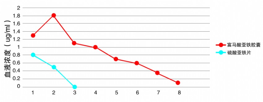 富马酸亚铁胶囊的生物利用度远高于硫酸亚铁片
