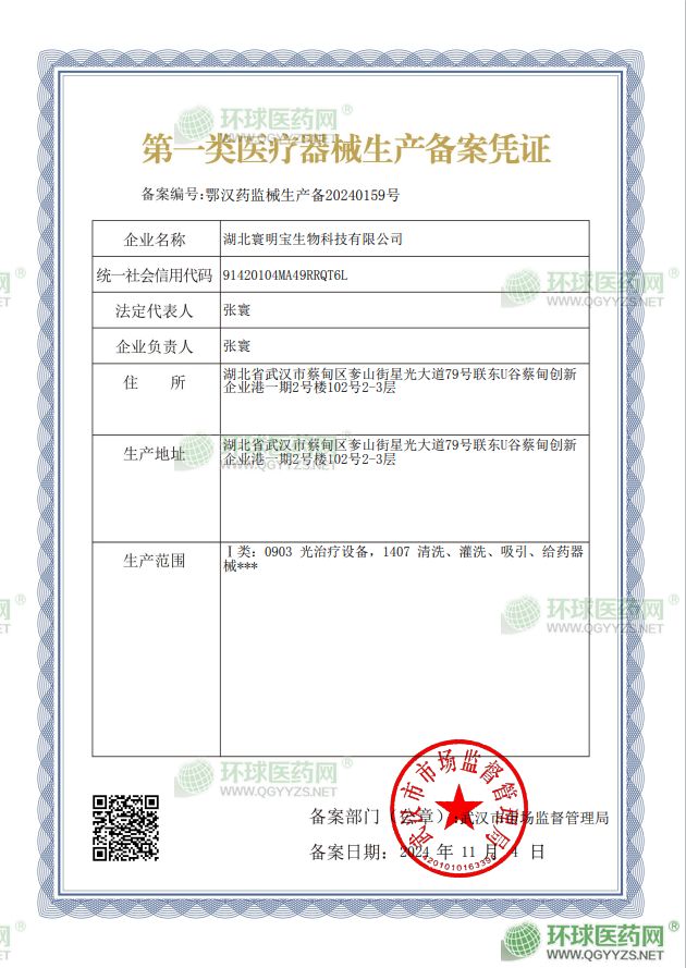 湖北寰明宝生物科技有限公司成立于2021年5月26日。主要从事一类医疗器械、皮肤外用产品的研发、生产、销售。现具备产品资质有粉剂、膏剂、水剂,有造口皮肤保护剂,医用退热凝胶,粉末给药器,导光凝胶。现已形成了一套完整规范的生产管理,质量管理,营销管理和服务管理体系。