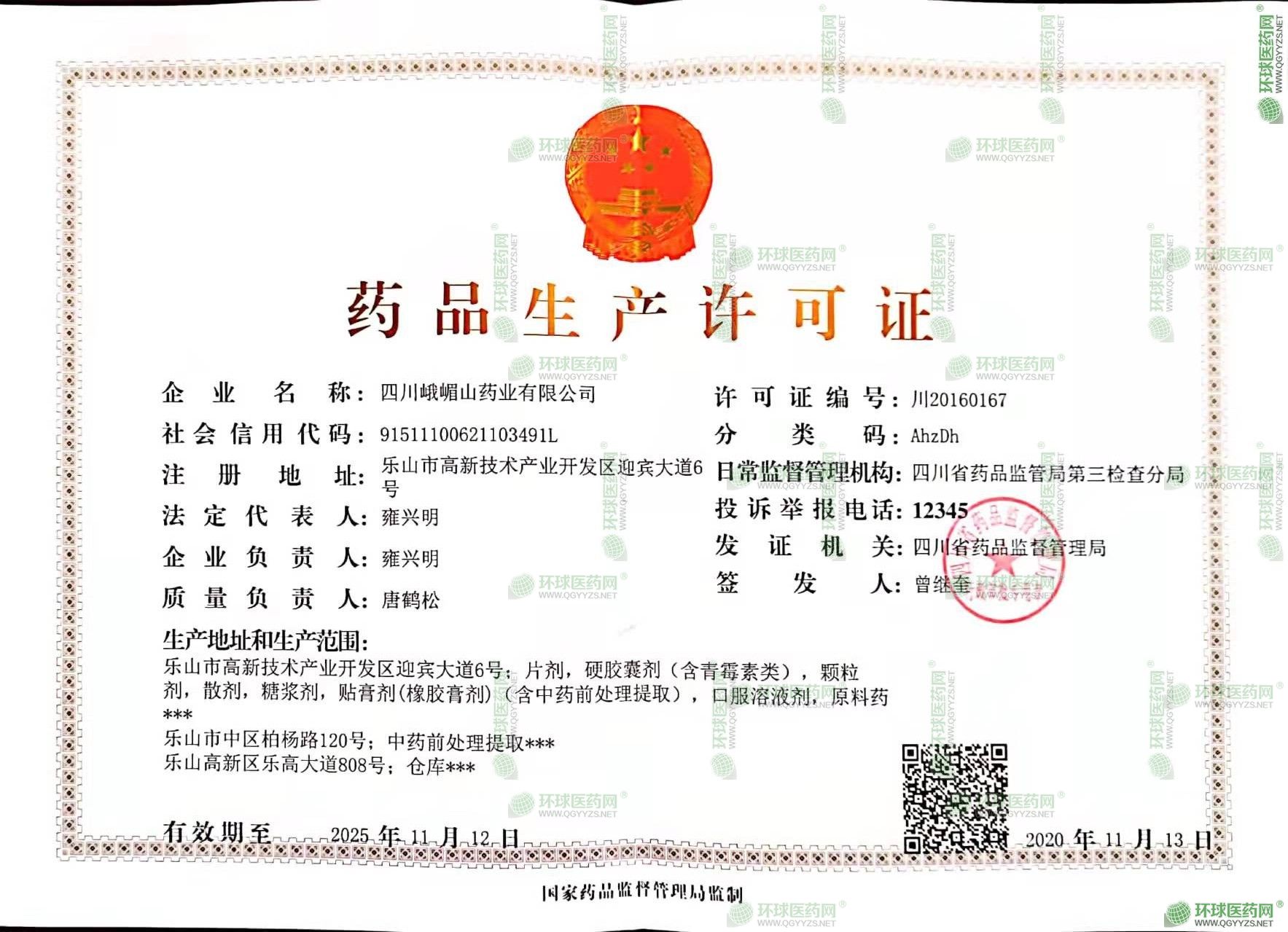 发证机关: 湖北省药品监督管理局