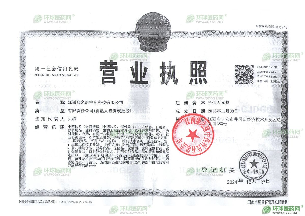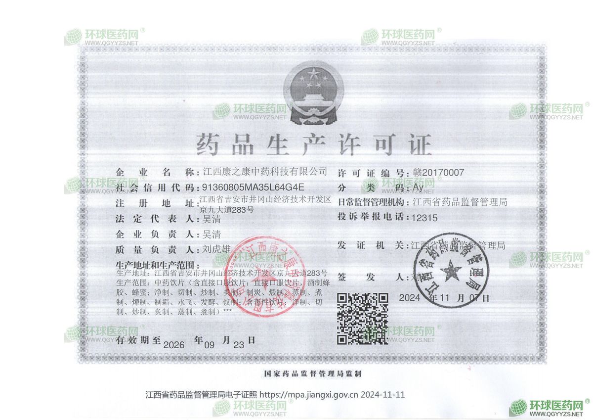 我公司是吉安市重点招商引资企业,占地50余亩,有野生中药材移栽种植,中药材采购与销售,中药饮片生产.包括直接口服中药饮片,毒性饮片.普通饮片。公司董事长为樟帮炮制传承人,于1981年从事樟帮炮制师傅学习传统炮制。公司的拳头产品有水飞类雄黄.水飞朱砂,水飞珍珠等。发酵类百药煎、六神曲、红曲、建曲等.冻干熊胆粉,冻干三七粉,水蛭等,有霜剂类巴豆霜、西瓜霜,千金子霜等。野生酒制黄精经九蒸九晒后甘甜怡香。公司以生产精制饮片为主,以野生中药材原科为主,确保产品质量可靠,公司同时生产食品。苁蓉鹿尾片,桑棋木瓜片,具有传承配方.针对目前的富贵病,如痛风、高血压、五劳七伤、肾功能低下、免疫功能低下,亚健康人群具有较好效果。益生菌片能改善肠胃失调。公司是国家高新技术企业,具有专精特新,小巨人,科技进步奖等荣誉,公司是中国中药协会副会长单位。是江西中医药大学,江西井冈山大学的战略科研合作单位。在传承与创新中有全方位人才,为企业推陈出新,做大做强积累了潜力。江西国大药业有限公司是康之康的投资方之一,国大药业自成立20年来,为医药的发展做出了很大贡献。打通了上下游采购配送渠道,解决了百姓用药方便。康之康将以做良心药,做健康药,做百姓药,为宗旨。诚信,仁爱,拼搏。勇担社会责任,勇争企业价值,把中国五千多年的中医药事业发扬光大。康之康的主旨;做药中药,享康之康。把优良的健康带给人民。