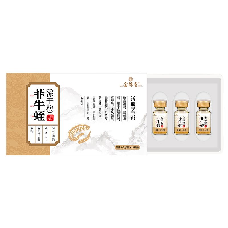 - 菲牛蛭(冻干粉) 批准文号: 中药饮片规 格: 0.3g/瓶*10瓶/盒