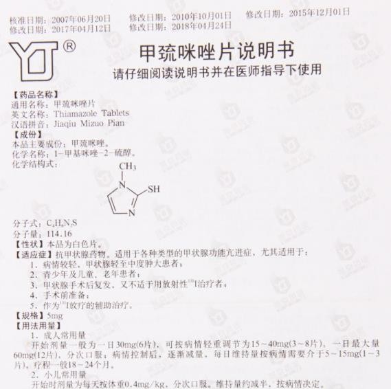 【药理】本品为抗甲状腺药物。其作用机制是抑制甲状腺内过氧化物酶,从而阻碍吸聚到甲状腺内碘化物的氧化及酪氨酸的偶联,阻碍甲状腺素(T4)和三碘甲状腺原氨酸(T3)的合成。动物实验观察到可抑制B淋巴细胞合成抗体,降低血循环中甲状腺刺激性抗体的水平,使抑制性T细胞功能恢复正常。
