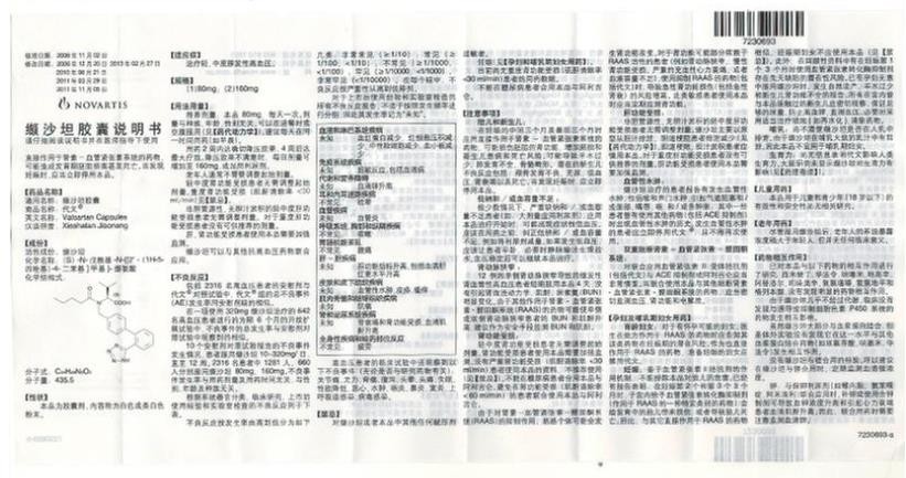 - 北京诺华制药代文缬沙坦胶囊说明书