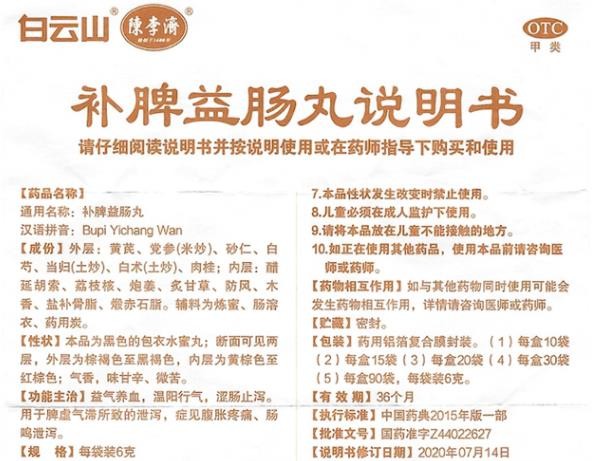 - 本页面信息仅供参考,请以产品实际附带说明书为准。 白云山 陈李济补脾益肠丸 说明书图片版 白云山陈李济 补脾益肠