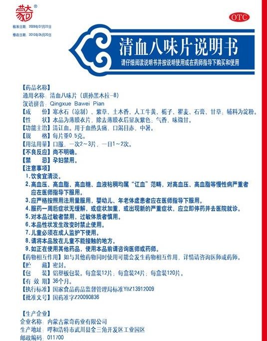 - 蒙奇清血八味片说明书