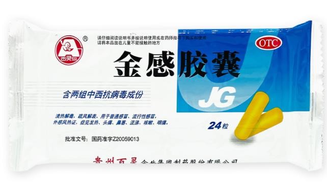 - 本页面信息仅供参考,请以产品实际附带说明书为准。 贵州百灵 金感胶囊 外包装 贵州百灵金感胶囊说明书(2020版) 【药品