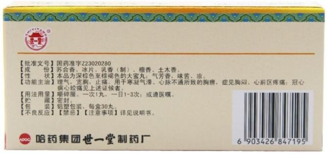 - 哈药世一堂冠心苏合丸说明书