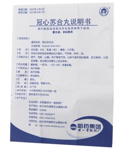 【药品名称】通用名称:冠心苏合丸