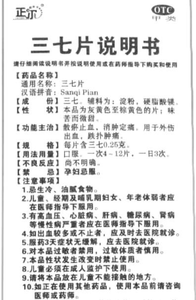 【规格】每片含三七0.25克