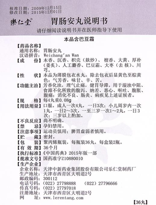 - 本页面信息仅供参考,请以产品实际附带说明书为准。 天津中新乐仁堂胃肠安丸 图片 天津中新乐仁堂胃肠安丸 说明书