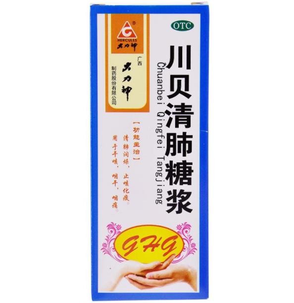- 本页面信息仅供参考,请以产品实际附带说明书为准。 大力神川贝清肺糖浆 外包装-- 国药准字Z45022199 大力神川贝清肺糖