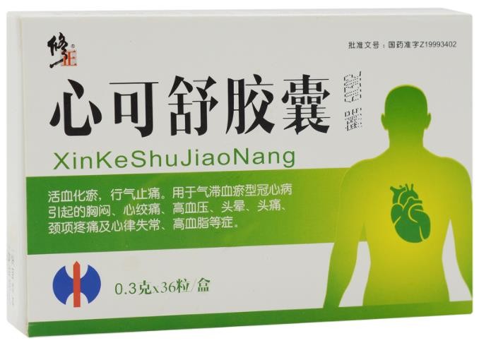 中成药、处方药、医保乙类。活血化瘀、行气止痛。用于气滞血瘀型冠心病引起的胸闷、心绞痛、高血压、头晕、头痛、颈项疼痛及心律失常、高血脂等症。多家企业生产。目前,武汉同心茂源医药有限公司在环球医药网招商。【药品名称】通用名称:心可舒胶囊
