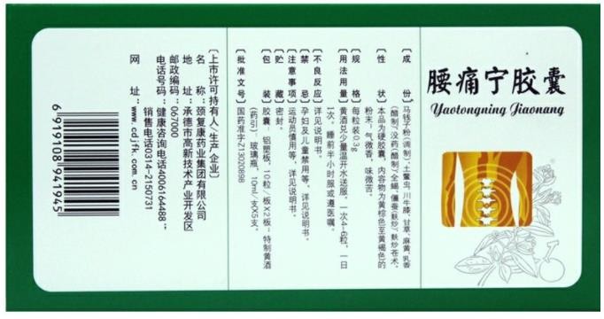 - 本页面信息仅供参考,请以产品实际附带说明书为准。 承德 颈复康腰痛宁胶囊说明书文字版 【药品名称】通用名称:腰痛宁胶囊