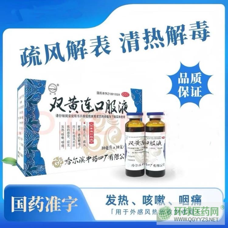 本品为金银花、黄芩、连翘等药味经加工制成的口服液。