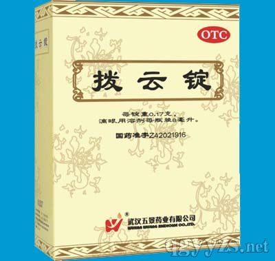 拨云锭,中成药名。由炉甘石(煅)、冰片、龙胆浸膏、没药(制)、麝香、硼砂(煅)、芒硝、玄明粉、乳香(制)、明矾(煅)组成。具有明目退翳,解毒散结,消肿止痛的功效。用于暴发火眼,目赤肿痛,痧眼刺痛,目痒流泪,翼状胬肉,牙龈肿痛,喉舌红肿。