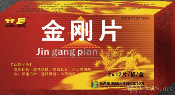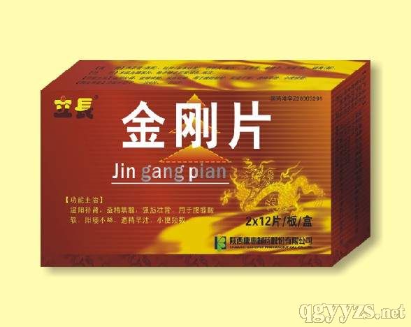 金刚片,中成药名。由肉苁蓉、杜仲(盐水炒炭)、硫黄、巴戟天、羊腰子、淫羊藿、狗肾(烫)组成。具有温阳补肾,益精填髓,强筋壮骨的功效。用于腰膝酸软,阳痿不举,遗精早泄,小便频数。招商厂家:西安藻露堂药业集团大明宫医药有限公司、西安必康制药集团有限公司、陕西康惠制药股份有限公司等。
