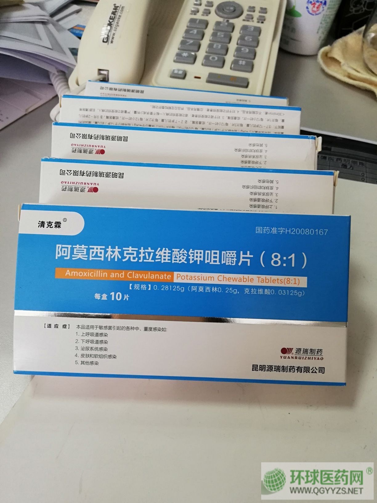 • 品名:阿莫西林克拉维酸钾咀嚼片8:1 基本药物