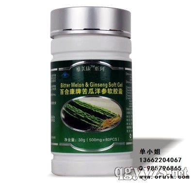 • 品名:苗草化唐百合康牌苦瓜洋参软胶囊