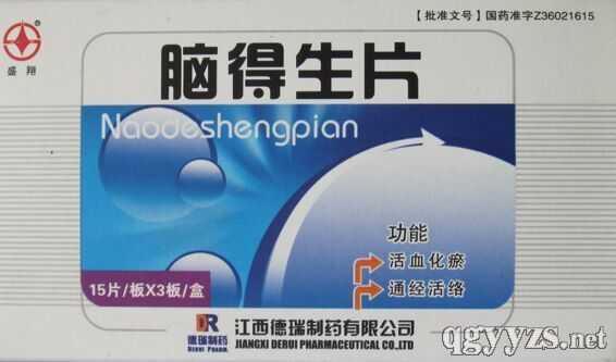 脑得生片,中成药名。由三七、红花、葛根、山楂(去核)组成。具有活血化瘀,通经活络的功效。用于瘀血阻络所致的眩晕、中风,症见肢体不用、言语不利及头晕目眩;脑动脉硬化、缺血性中风及脑出血后遗症见上述证候者。