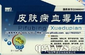 皮肤病血毒片,中成药名。由茜草、桃仁、荆芥穗(炭)、蛇蜕(酒炙)、赤芍、当归、白茅根、地肤子等39味组成。具有清血解毒、消肿止痒的功效。用于经络不和,温热血燥引起的风疹,湿疹,皮肤刺痒,雀斑粉刺,面赤鼻齇,疮疡肿毒,脚气疥癣,头目眩晕,大便燥结。