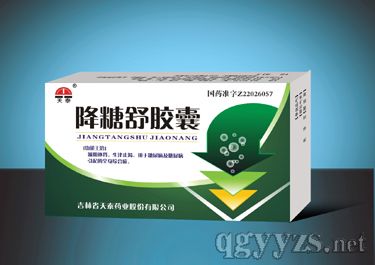 降糖舒胶囊,中成药名。由人参、枸杞子、黄芪、刺五加、黄精、益智仁、牡蛎、地黄、熟地黄、葛根、丹参、荔枝核、知母、生石膏、芡实、山药、玄参、五味子、麦冬、乌药、天花粉、枳壳组成。具有滋阴补肾,深津止渴的功效。用于糖尿病及糖尿病引起的全身综合症。
