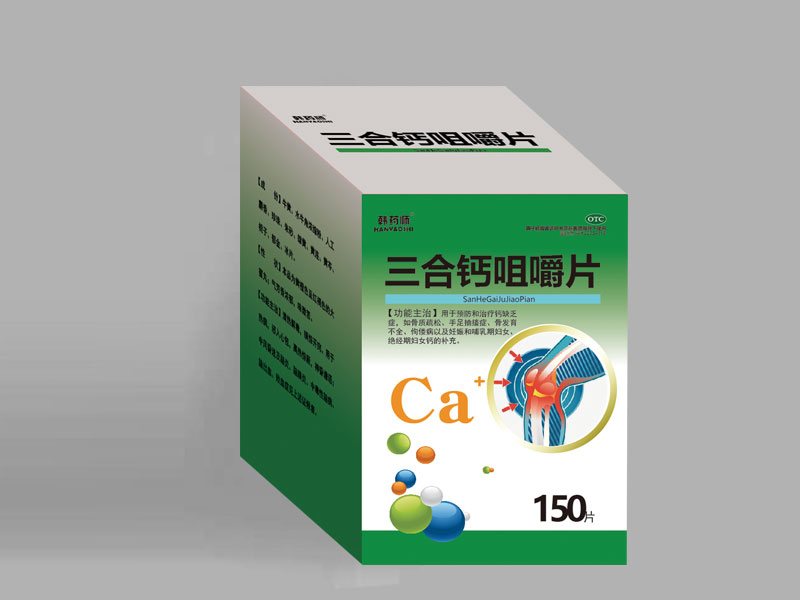 • 品名:三合钙咀嚼片 基本药物