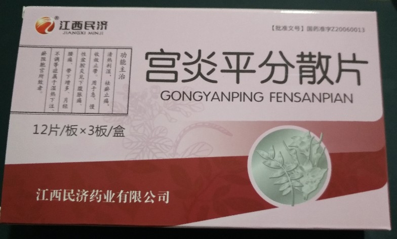 宫炎平片,中成药名。由地稔、两面针、当归、五指毛桃、柘木组成。具有清热利湿,祛瘀止痛,收敛止带的功效。用于湿热淤阻所致小腹隐痛、带下病,症见小腹隐痛,经色紫暗、有块、带下色黄质稠;慢性盆腔炎见上述症候者。