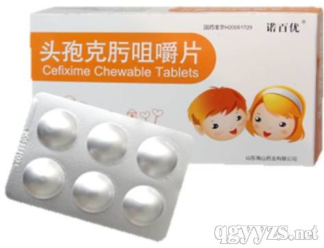 头孢克肟咀嚼片,西药名。为抑菌药。用于链球菌属(肠球菌除外)、肺炎球菌、淋球菌、卡他布兰汉球菌、大肠杆菌、克雷伯杆菌属、沙雷菌属、变形杆菌属及流感杆菌等中头孢克肟敏感菌引起的感染。