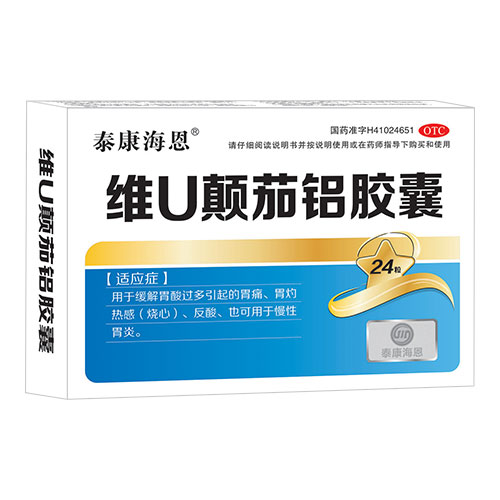 维U颠茄铝胶囊,西药名。为抗溃疡病药。用于缓解胃酸过多引起的胃痛、胃灼热感(烧心)、反酸,也可用于慢性胃炎。