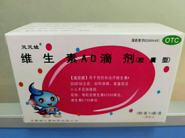 - 品名:维生素AD滴剂(胶囊型)铁盒一岁一下