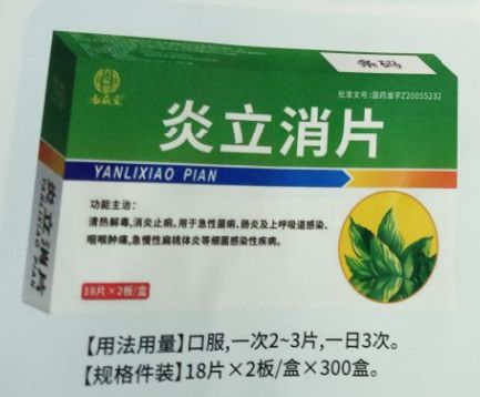 炎立消片,中成药名。由丁香叶组成。具有清热解毒,消炎止痢的功效。用于急性菌痢、肠炎及上呼吸道感染、咽喉肿痛、急慢性扁桃体炎等细菌感染性疾病。