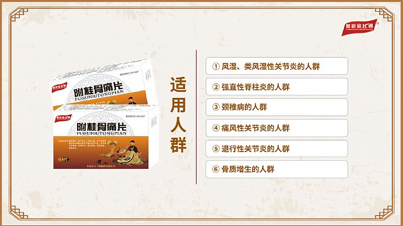 | 补充说明 | 温阳散寒,消肿止痛,快速消炎,目前一款快速止痛的中药止痛药,**产品,院外药房,专科诊所的掘金利器。 祛风除湿、益气活血,止痛更除湿,全国仅此一个文号,**空间大。 适用于身体因受风寒湿引起的肌肉、颈、肩、腰、腿关节等部位酸、胀麻、僵痛、屈伸不利、增生性关节炎等疾病,见效迅速,疗效稳定。 |