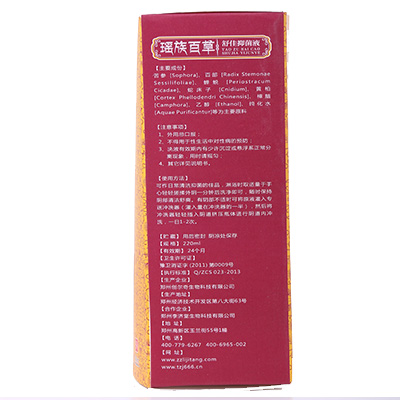 | 主要成分 | 苦参、黄柏、蛇床子、百部、薄荷、乙醇、纯化水 |