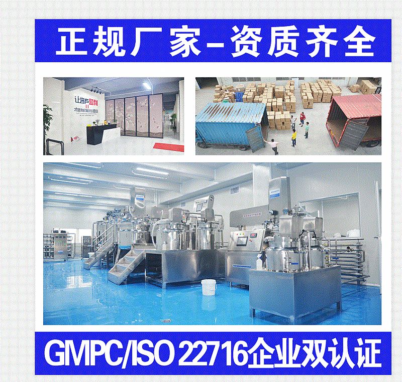 - 广州**日用化工有限公司提出以高新技术研发应用为企业打造核心竞争力的目标,做出准确预判和把握市场潮流动向,秉承天然植物、科学护肤理念,开发出有差异化、有卖点的爆款产品。引进先进生产设备,以严格的生产管理和品质检测做标准,选用全球优质原料供应,现代化自动流水线生产,可确保生产出高品质,精细化的产品。