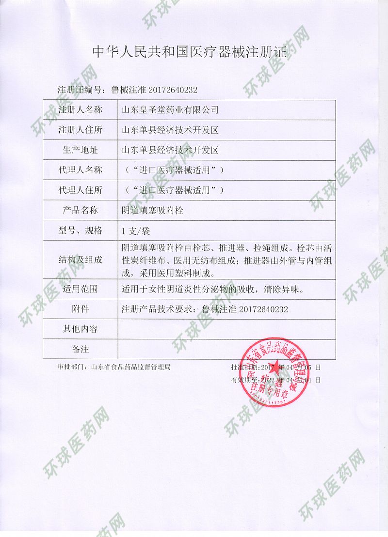 | 补充说明 | 山东皇圣堂药业有限公司自主研发阴道填塞。阴道填塞是根据女性阴道构造设计,应用活性炭纤维性和强吸附性能力的原理,阻断细菌和病毒的培养基;同时将阴道内的致病菌清除体外,使其恢复正常的生理自洁功能。阴道填塞适用于各类阴道炎、宫颈炎的治疗及**妇科手术后的止血。妊娠期阴道炎患者可使用。 |