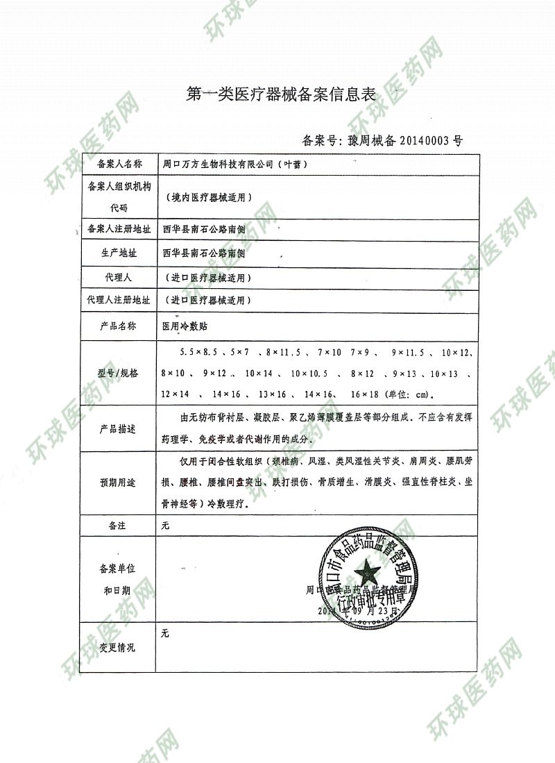 | 产品名称 | 五味活络贴医用冷敷贴 |