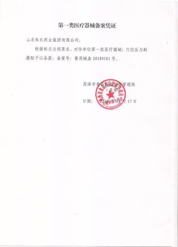 | 功能主治 | 贴于人体穴位处,进行外力刺激。无创。 |