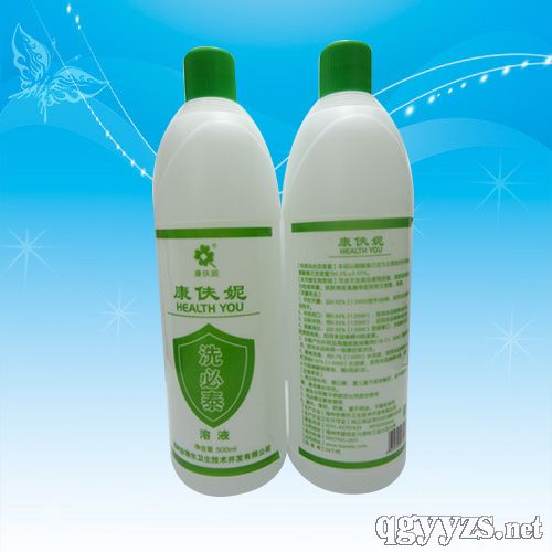 | 补充说明 | 【有效成份及含量】本品以醋酸氯已定为主要成份的杀菌液,醋酸氯已定含量为0.2%±0.02%。 【杀灭微生物类别】可杀灭金黄色葡萄球菌、铜绿假单胞菌、白色念珠菌、皮肤表皮真菌等医院常见细菌、真菌; 【适应 症】适用于皮肤及粘膜的消毒、杀菌,创面感染和子宫颈糜烂的冲洗。 【性状、规格】液体、500ml/瓶 【用量用法】 1.手的灭菌:以0.02%(1:5000)泡手3分钟,即用本品稀释10倍泡手; 2.冲洗创口:用0.05%(1:2000)水溶液,即用本品稀释4倍冲洗; 3.妇科冲洗:用0.05%(1:2000)水溶液,即用本品稀释4倍冲洗; 4.含漱消炎:以0.02%(1:5000)溶液漱口,对咽峡炎及口腔溃疡有效;即用本品稀释10倍含漱; 5.分娩时,产妇外阴及其周围皮肤消毒:用0.1%(1:1000)擦拭或冲洗;即用本品稀释一倍擦拭或冲洗; 6.器械消毒:消毒用0.1%(1:1000)水溶液,即用本品稀释一倍;贮存用0.02%(1:5000)水溶液,即用本品稀释10倍,加入0.1%亚硝酸钠浸泡,隔2周换1次 7.房间、家具等消毒:用0.2%(1:500)水溶液喷雾或拭擦。 【注意事项】 1、本品限外用,禁口服,置儿童不易接触处,如不慎触及眼睛,请用清水冲洗; 2、避免与阴离子表面活化剂混合使用; 3、洗必泰过敏者禁用 4、避光、密封、防潮,置于阴凉、干燥处保存 |