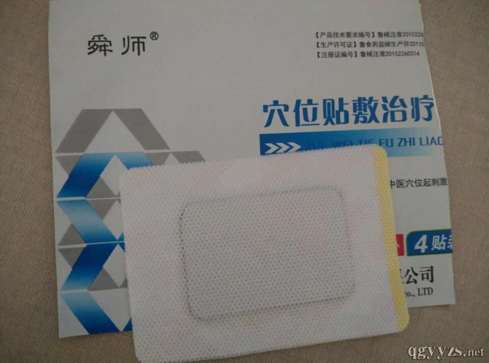 | 补充说明 | 【产品名称】穴位贴敷治疗贴 【结构及组成】本品由远红外陶瓷粉、丙烯酸压敏胶、水刺无纺布、不锈钢珠及离型纸制成。穴位贴敷治疗贴的压敏胶布剥离强度不小于1.0N/cm,持粘性应不大于2.5mm,远红外发射波长范围8μm-15μm,法向比辐射率≥75* 【适用范围】本品针对人体特定穴位,对中医穴位起刺激作用。 【注册证号】鲁械注准20152260314 【规 格】50mm*50mm、50mm*80、60mm*90mm、85mm*85mm、70mm*100mm、95mm*130mm 4贴*2袋*1盒 |