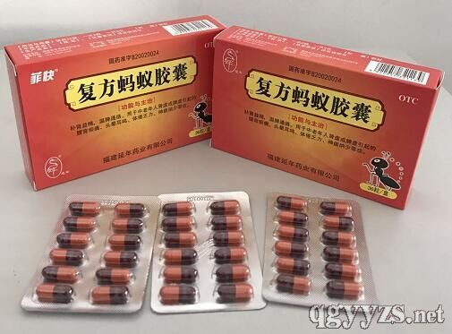 | 补充说明 | 复方蚂蚁胶囊是本公司和国内知名医学专家联合研制的专利产品,它由黑蚂蚁、地龙等六味中药精炼制成,是纯中药制剂产品,其性温,养血活血,不仅能滋阴壮阳,同时,还能提高人体免疫力,抗衰老,是当代少有的具备治疗和保健双重功效的补肾新药。 |